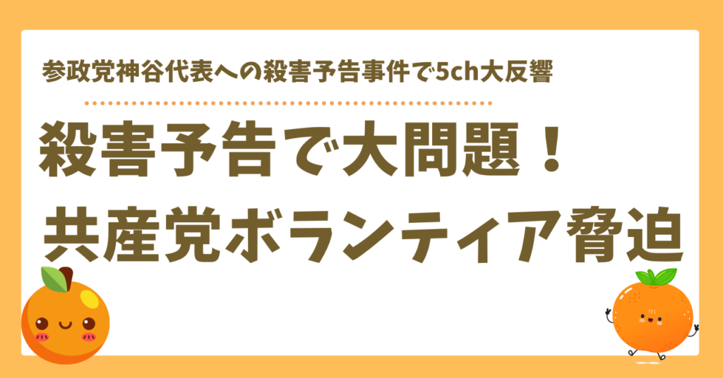 【5ch反応】参政党神谷代表を殺害予告で大問題!共産党ボランティア脅迫事件【まとめ】