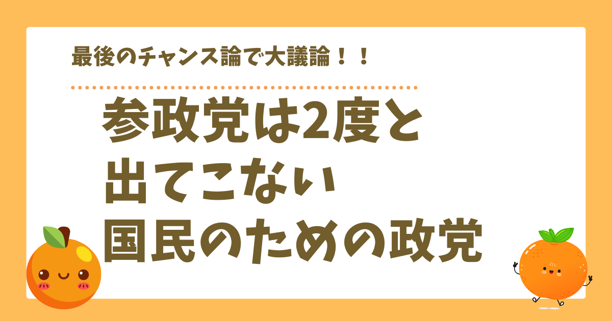 今回の議論を見ていると、参政党に対する期待と危機感が本当によく表れていますね。「2度と出てこない政党」「最後のチャンス」という表現が多く使われているのは、支持者の方々がいかに現在の政治状況を深刻に捉えているかの表れだと思います。グローバリズムvs反グローバリズムという世界的な構図の中で、参政党の位置づけを考えている方も多く、政治への関心の高さを感じます。様々な意見があっても、みんなが日本の将来を真剣に考えているのが印象的です🍊